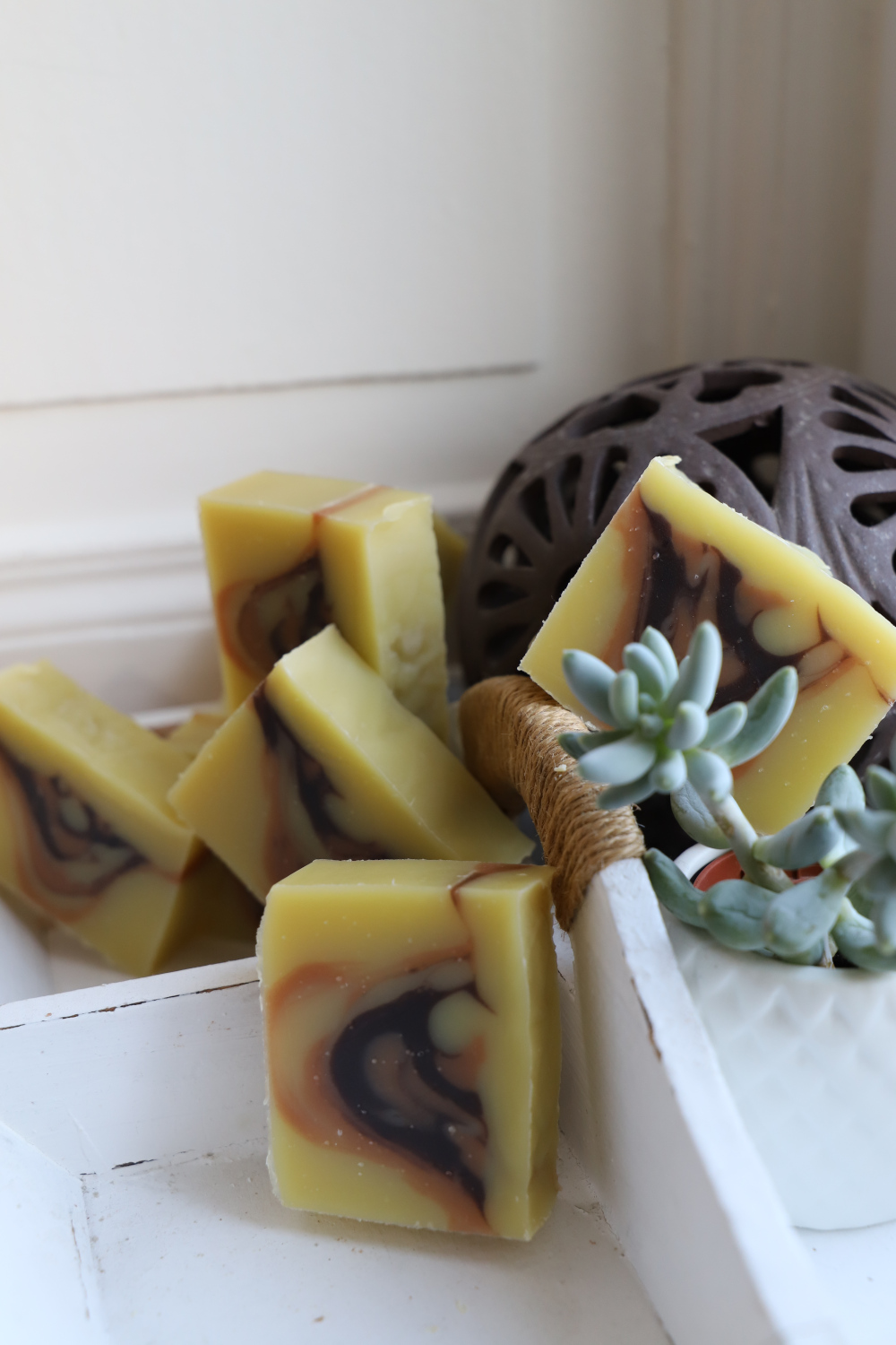 Composition: HV olive vierge, HV coco, eau, HV pépins de raisin, soude caustique, fragrance, HV amande douce bio, beurre de karité bio, cire d’abeille, argile rouge, cacao