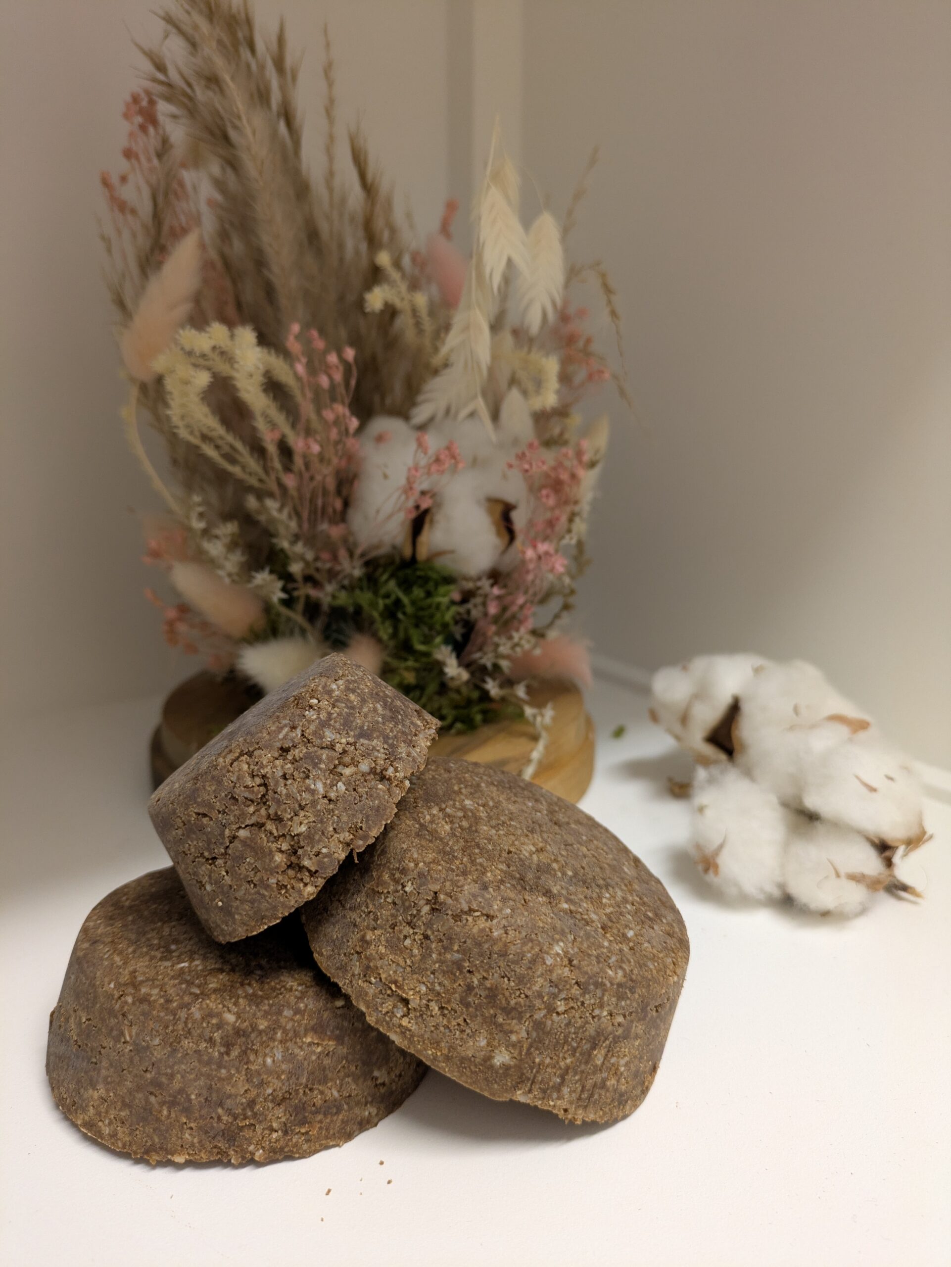 Composition : SCI, SLSA, poudre de Shikakai bio, beurre de karité bio, huile de noix de coco bio, infusion d’ortie et parfum fleur de cerisier.